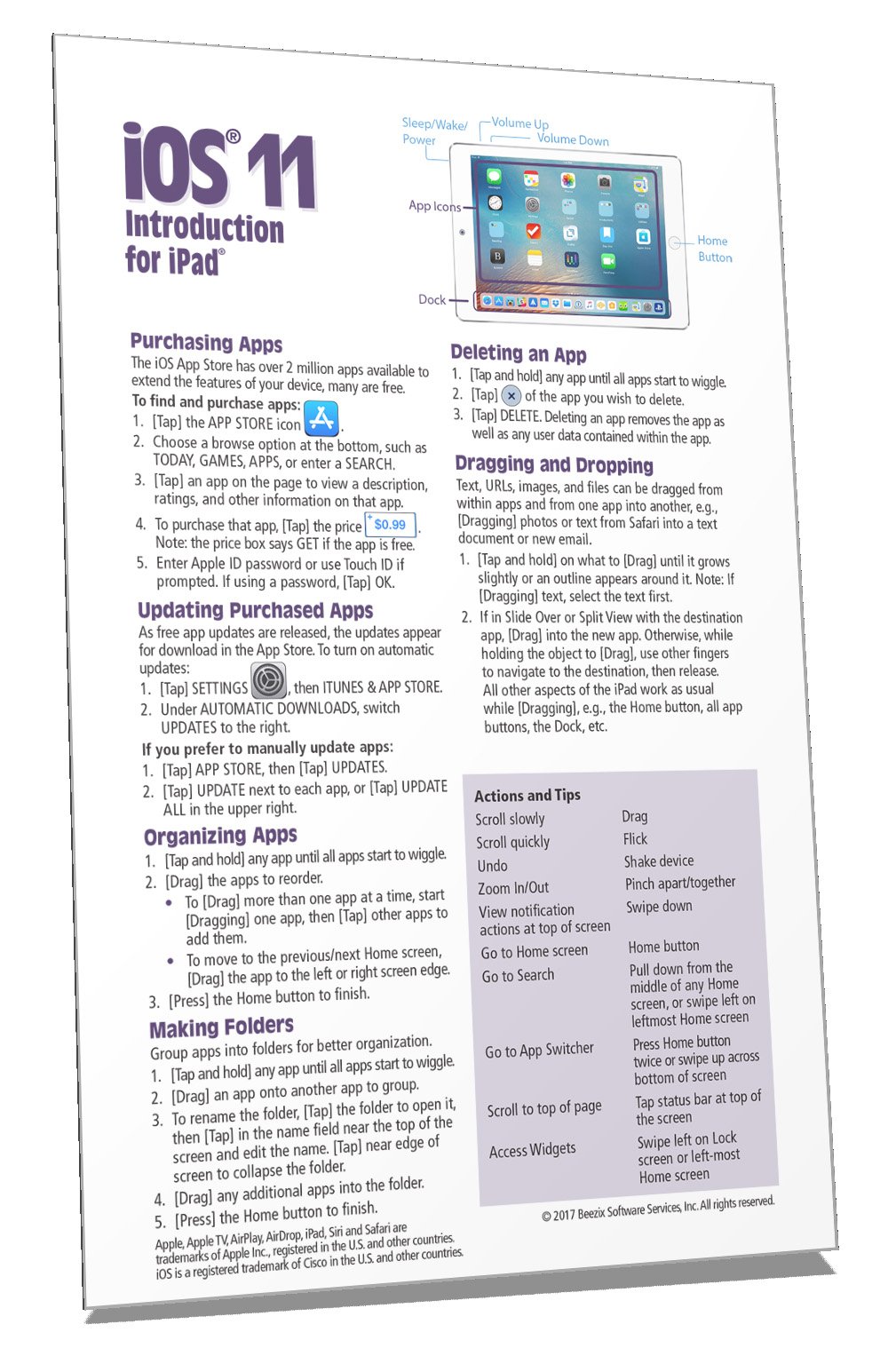 Ios 11 Introduction Quick Reference Guide For Ipad Cheat
